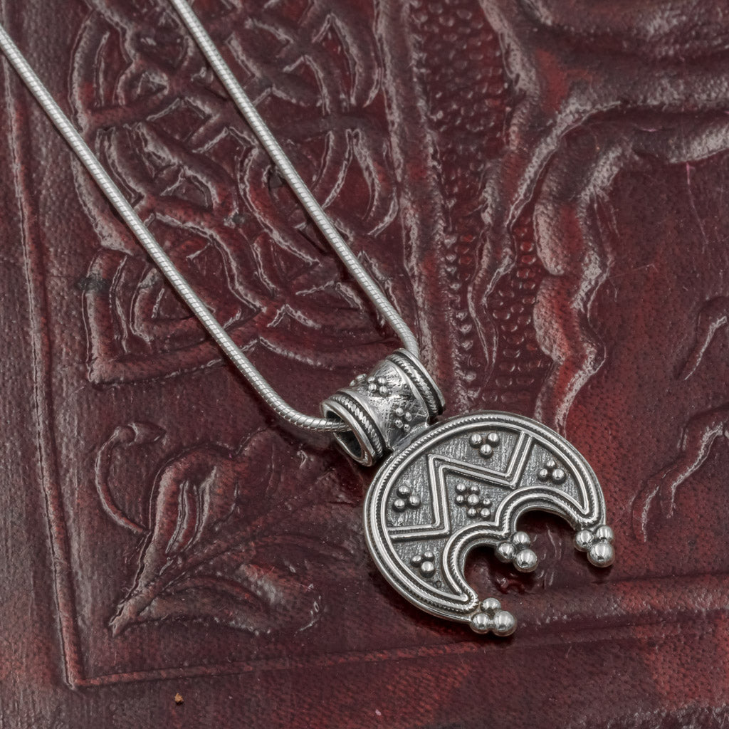 Puedes ver cómo queda esta cadena con varios colgantes que tenemos en oferta. Los colgantes que se muestran en la imagen no están incluidos, pero se pueden comprar por separado. La cadena no es adecuada para ninguno de nuestros otros colgantes debido al ancho del cierre.
