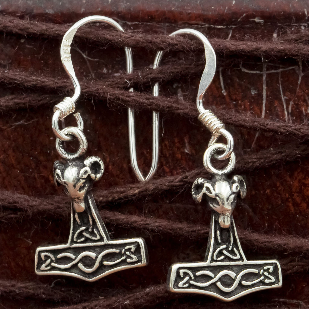 This is a hand made pair of Mjolnir (Thor's Hammer) earrings made entirely from 925 Sterling Silver in a Thor's Hammer design as droplet earrings.