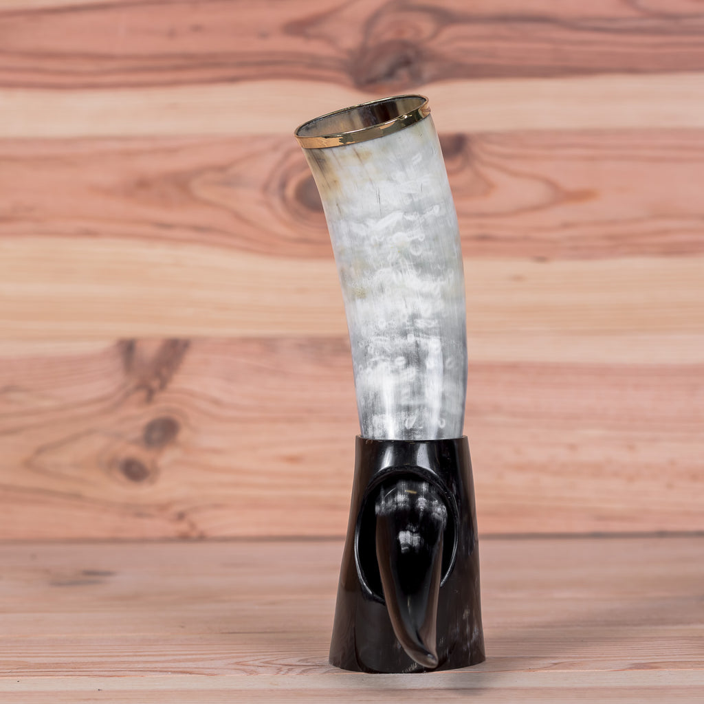 These horns have a brass rim added for extra comfort when drinking and a luxurious Jarl feel.