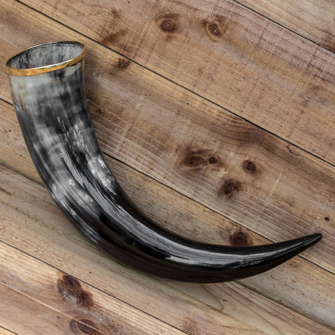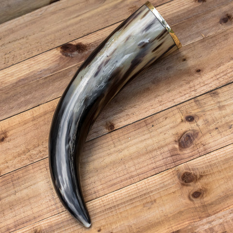 These horns have a brass rim added for extra comfort when drinking and a luxurious Jarl feel.