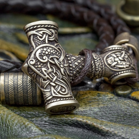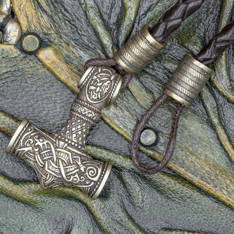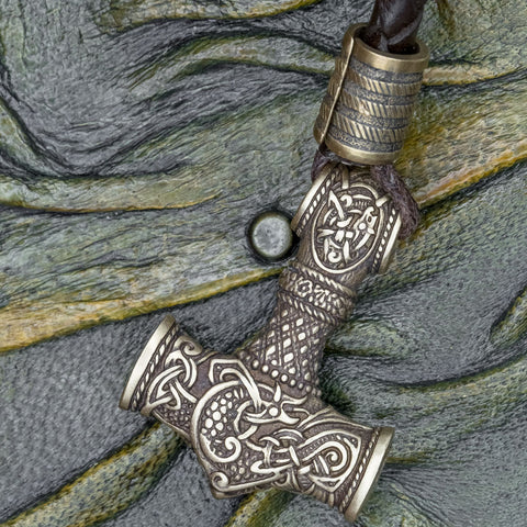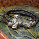 Bronze Thor's Hammer (Mjolnir) Leather Hook Bracelet
