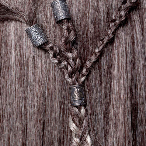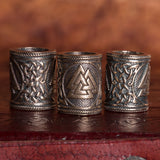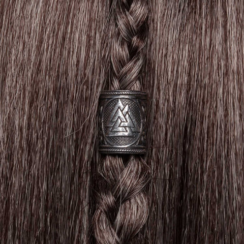 This large solid hair bead has the Valknut across the front and back, as well as additional decoration on the sides.