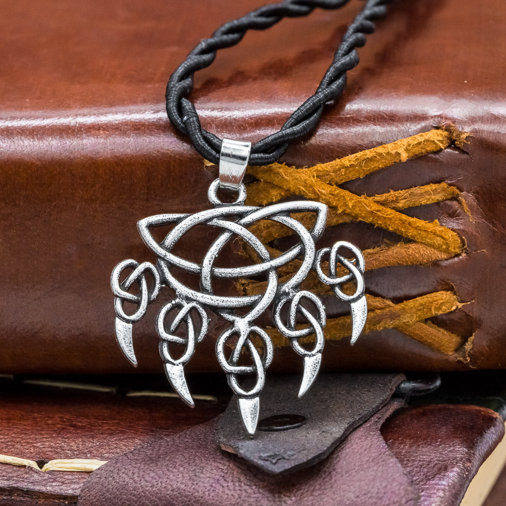 This pendant is cut out and formed out of knotwork on a chord necklace. The chord may be twisted rope or PU leather chord depending on availability. If you have a chord preference please contact us before purchase.