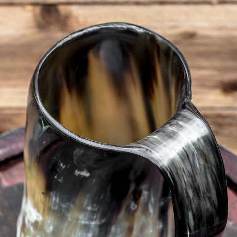 Horns are by-products of the meat industry. Our horns are salvaged from this so instead of going to waste, they are cleaned, reconditioned and turned into a beautiful vessel to start a new life. They're hand crafted of natural materials (ox or cow horn) so are likely to present some marks from the previous life or crafting process. None have a perfectly smooth finish by the very nature of the items which adds to their rustic charm. Each is handmade, beautiful and unique. All our horns are cleaned, sculpted and polished by our craftsman to a beautiful finish and are safe to drink from.