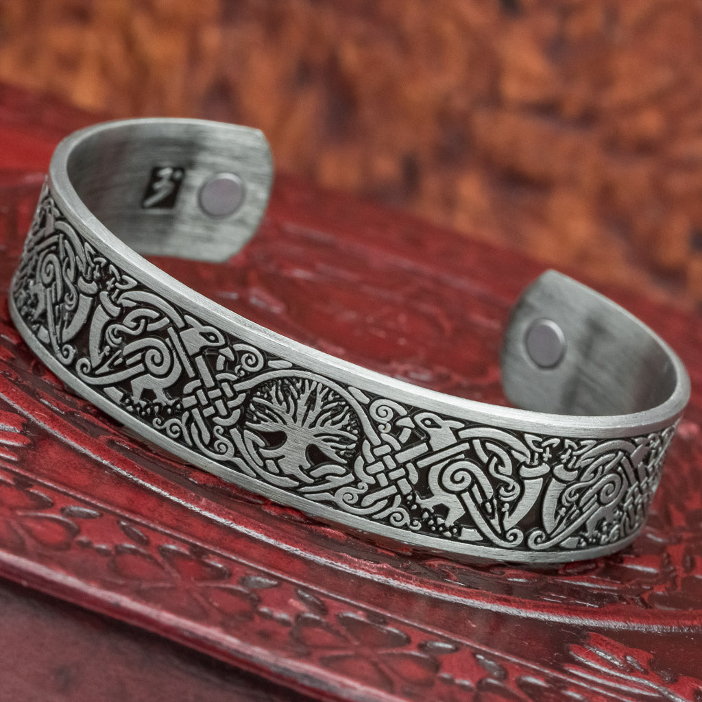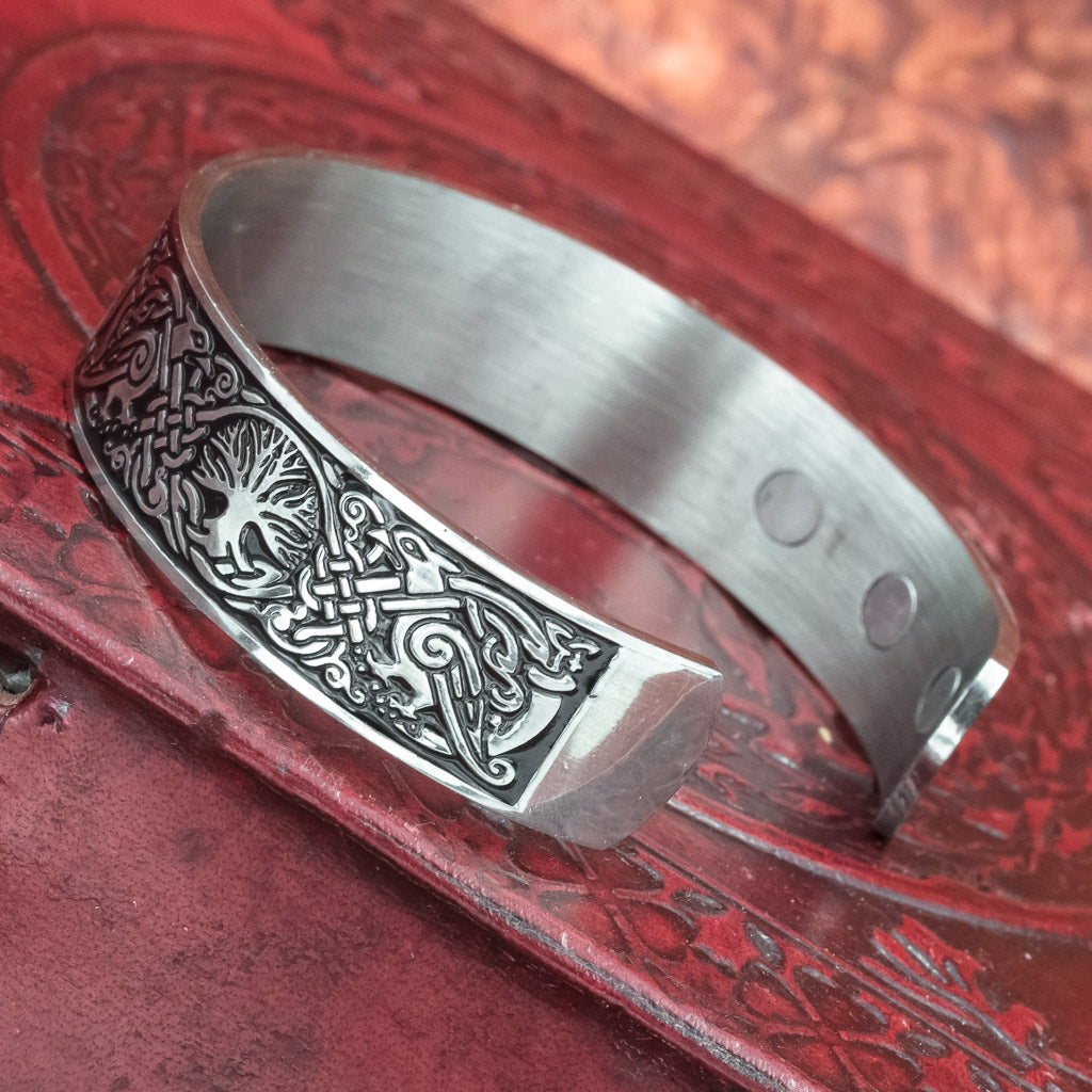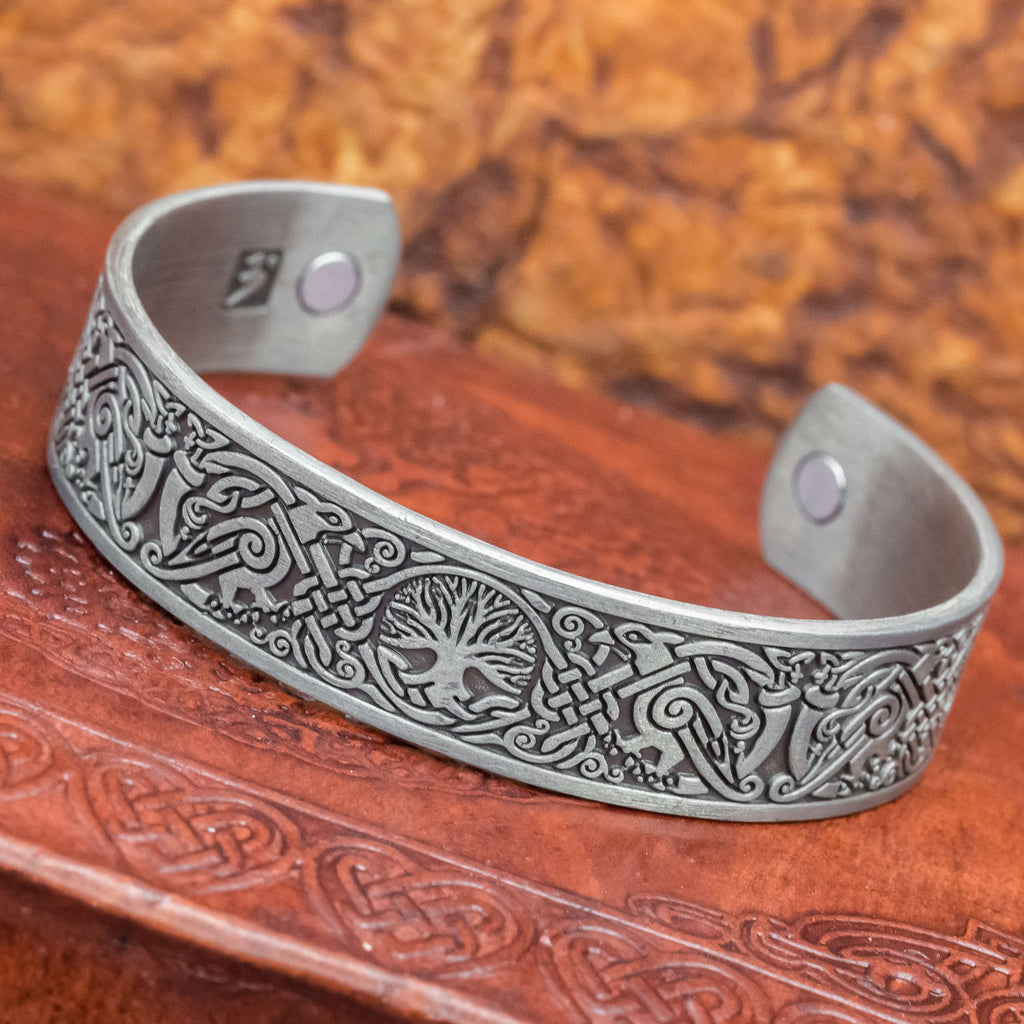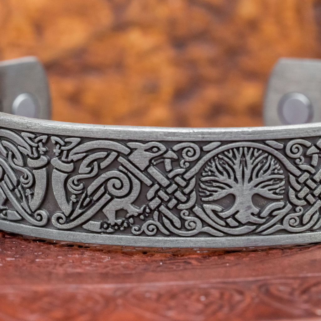 The bangle has the Yggdrasill (Tree of Life) surrounded by knotwork and ravens repeated around the band.