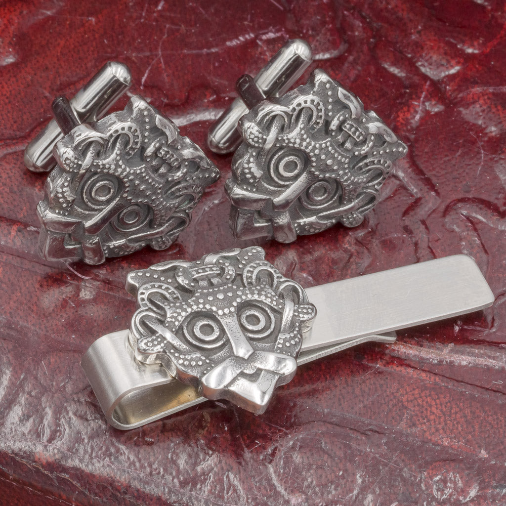 Stainless Steel Gnezdovo Mask Cufflinks and Tie Clip set