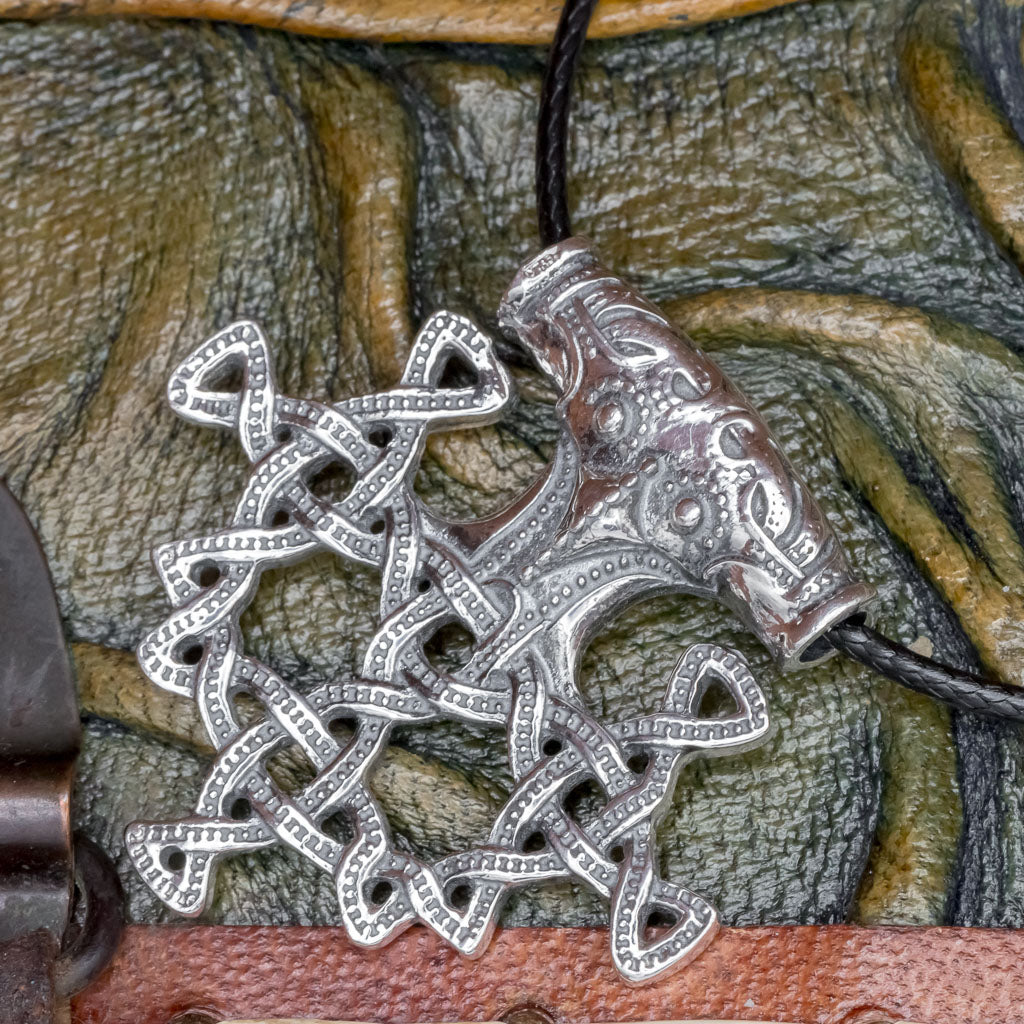 This pendant is based on a Viking Age find from York and it is very similar to a number of pendants from the Hiddensee treasure. Found in 1873 on the Hiddensee island, the collection consisting of 16 pendants, a brooch and a neck ring, is the largest discovery of gold Viking artifacts in Germany.