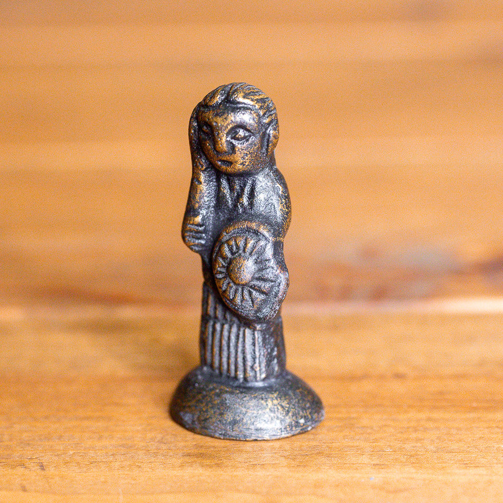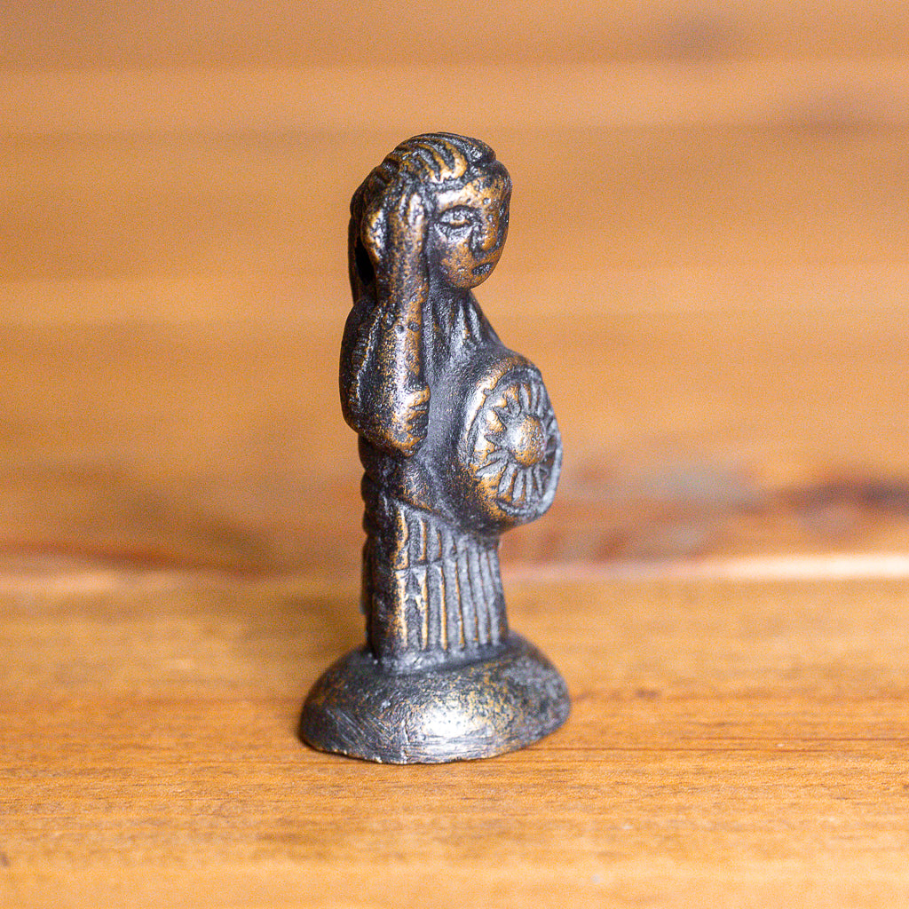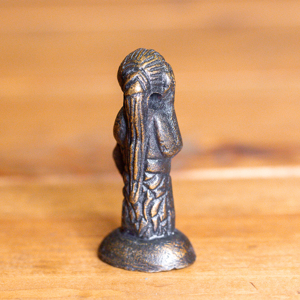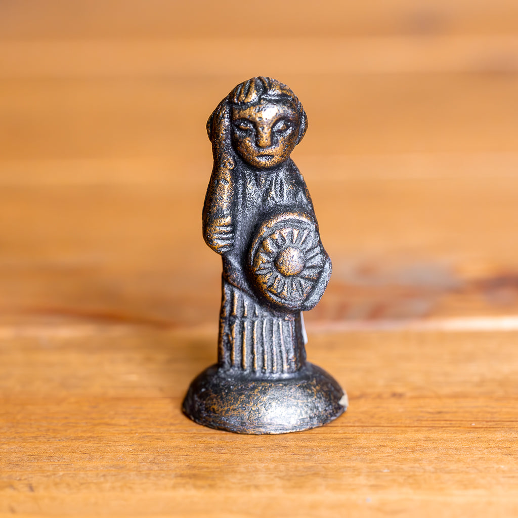 This is a hand cast Brass figurine of the Valkyrie from Hårby, Danmark. The model that was discovered dates from the Viking Age.