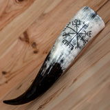 Every Viking needs their very own hand crafted drinking horn. Fill your horn, blessed with the Vegvisir symbol, to the brim with ale or mead, and drink yourself into Valhalla!